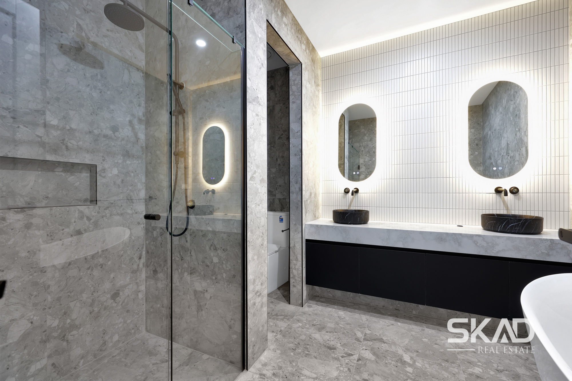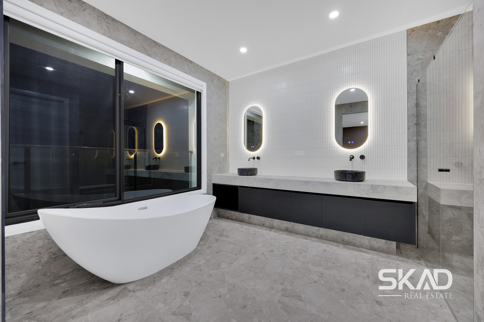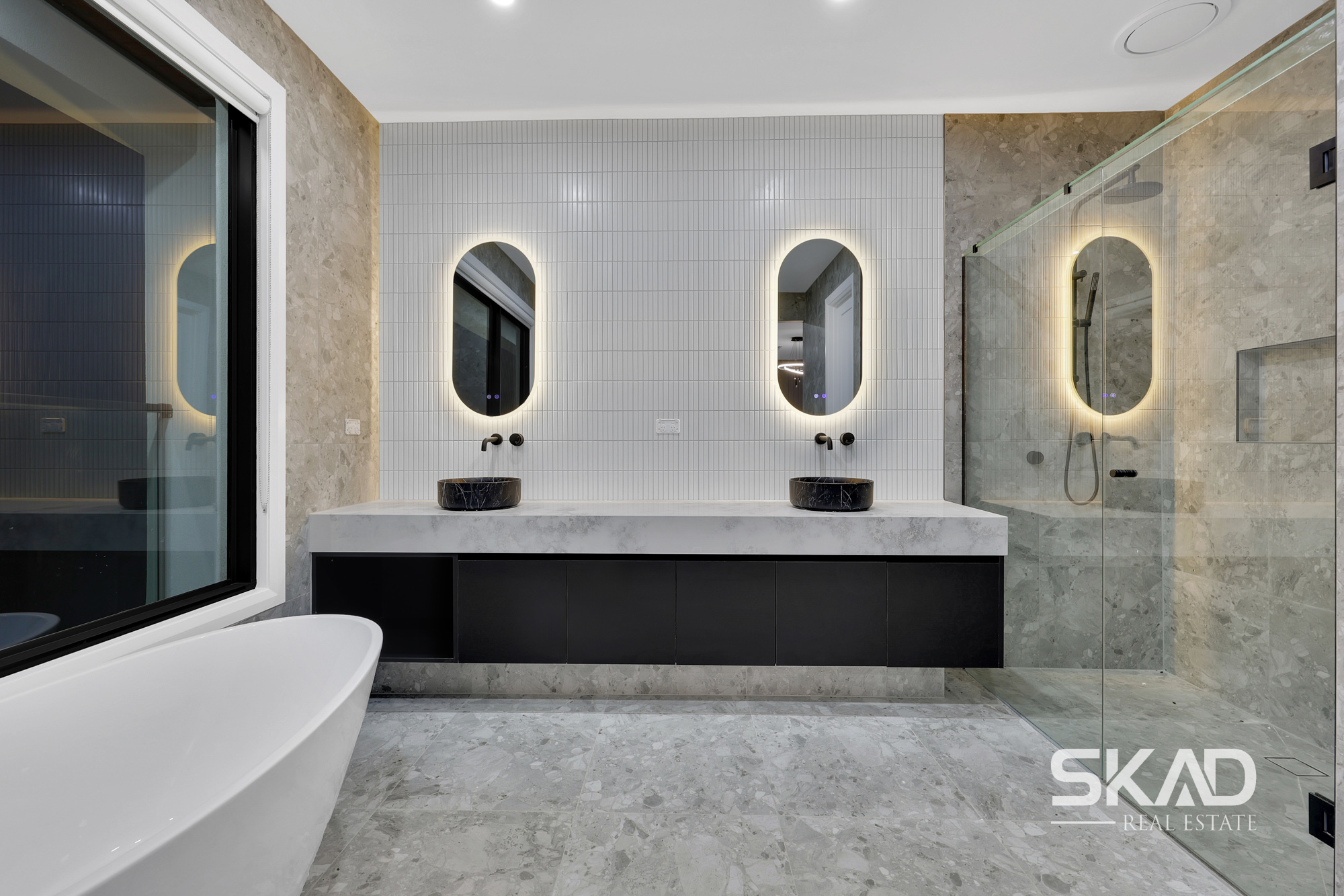 Master Suite: Expansive master bedroom with a luxurious ensuite featuring HIS/HERS vanities and a large shower.