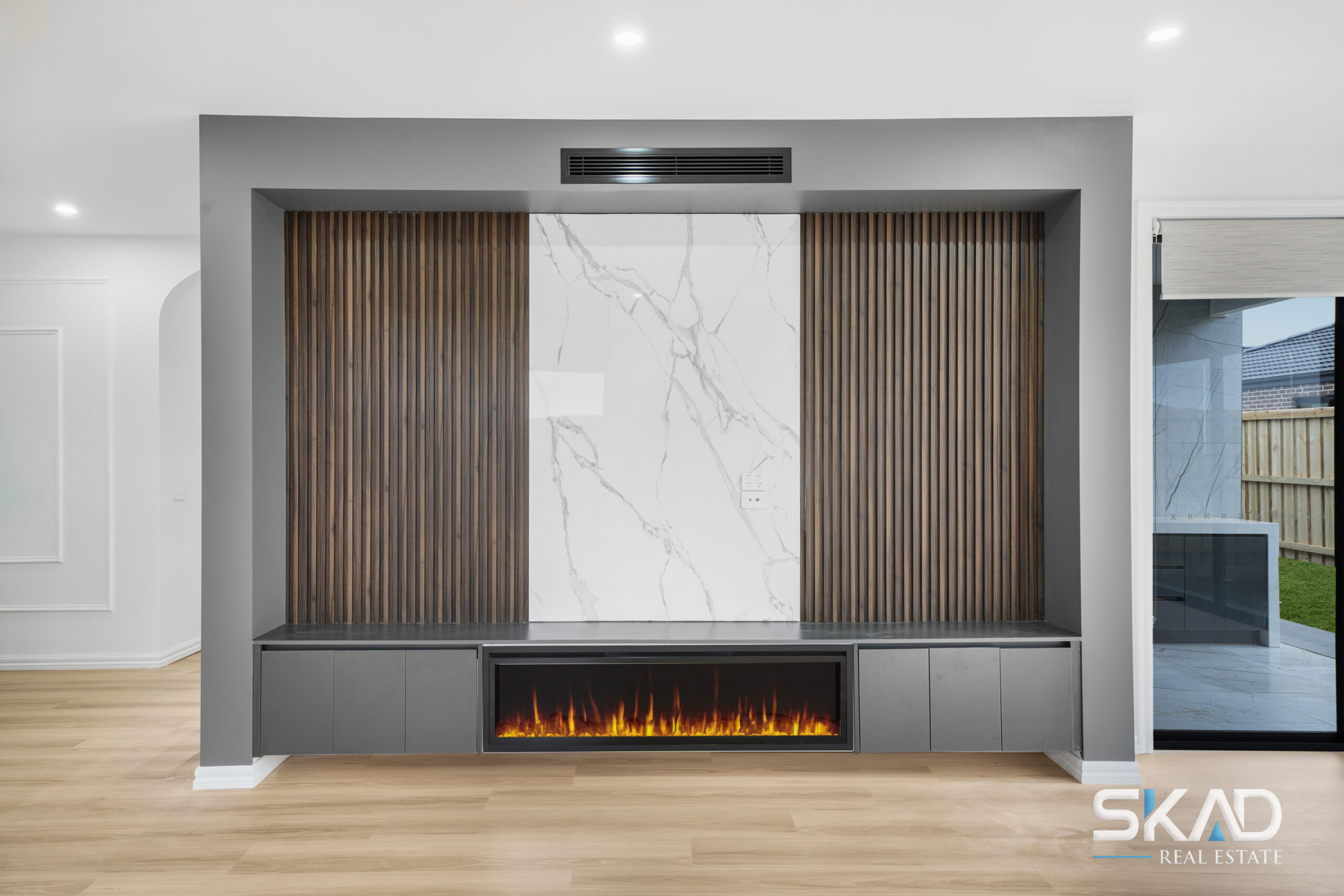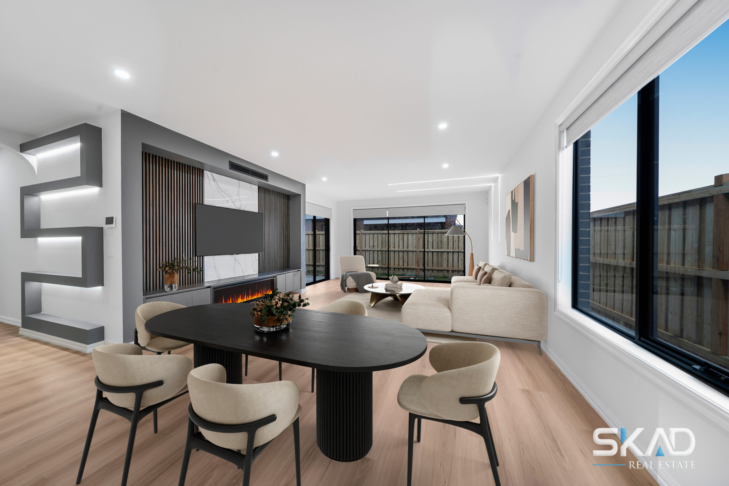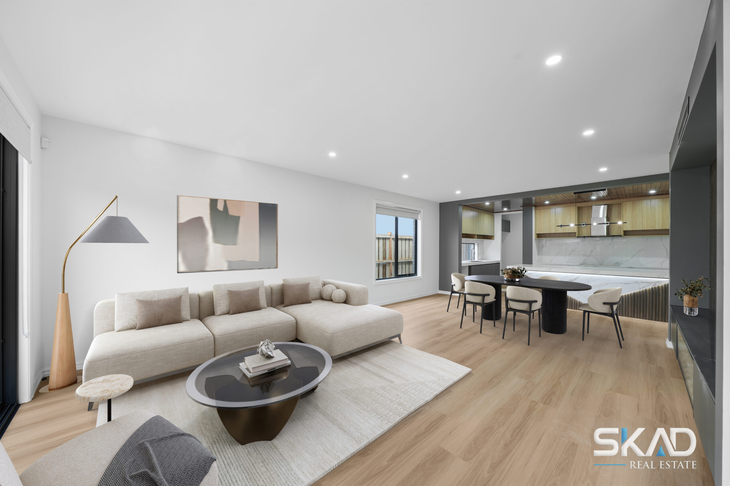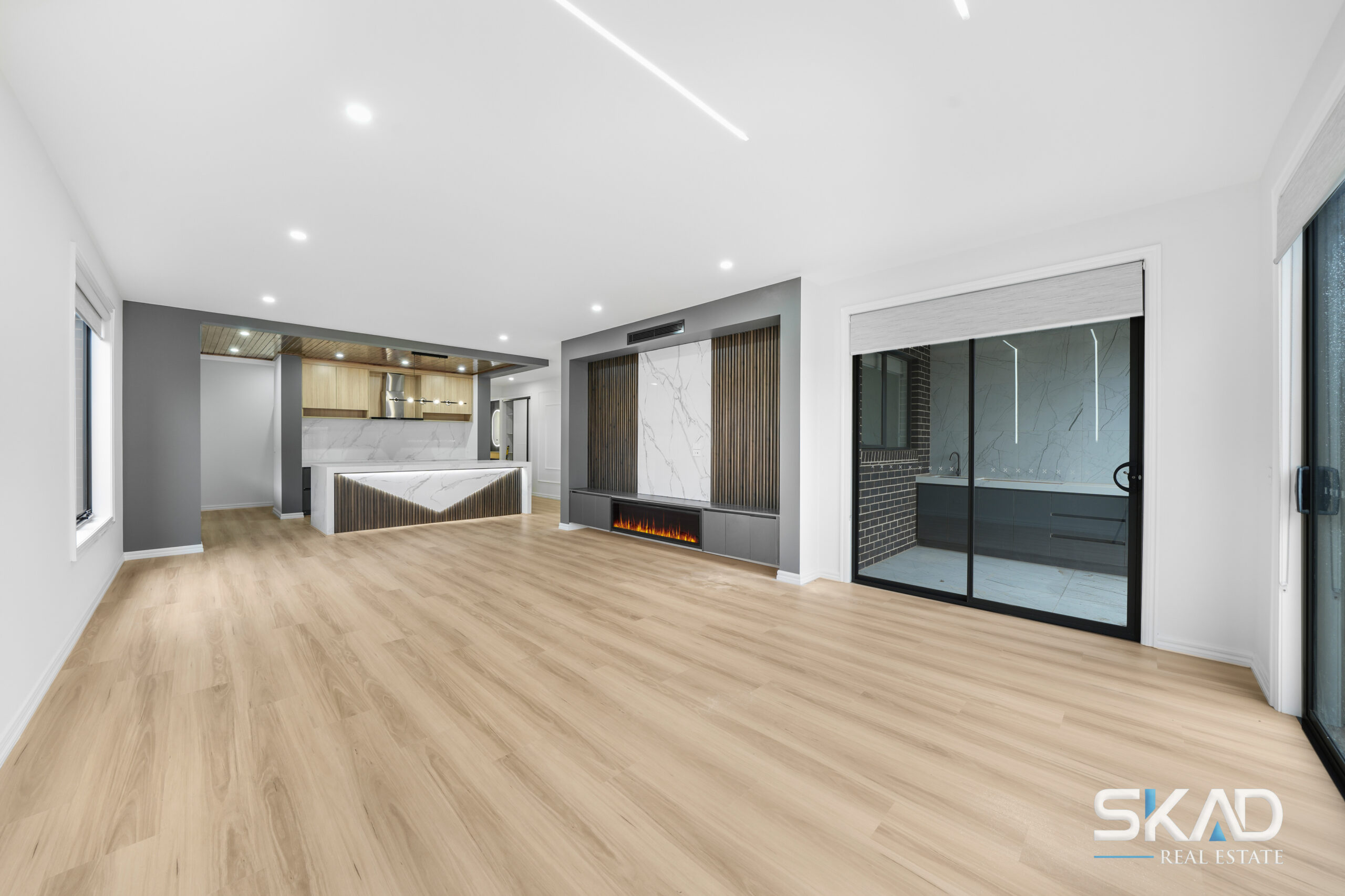 Set on a wonderfully wide block (approx 430mm sq ), this stunning home integrates an expansive floorplan with first-class features to deliver an inclusive environment that caters to the needs of any growing family. The distinctive rendered facade gives way to a free-flowing interior showcasing 4 generous bedrooms (extra-large master with WIR) complemented by a deluxe ensuite and main bathroom – with double vanities and floor-to-ceiling tiles. The living/dining area is accompanied by a superbly appointed kitchen complete with butler’s pantry, stainless-steel cooking appliances (900mm) and dishwasher. High square-set ceilings refrigerated heating and cooling and all laminated flooring throughout all add to the appeal, along with a large laundry, stone benchtops. The beautiful wooden bulkhead in the kitchen adds to the beauty of the living area .