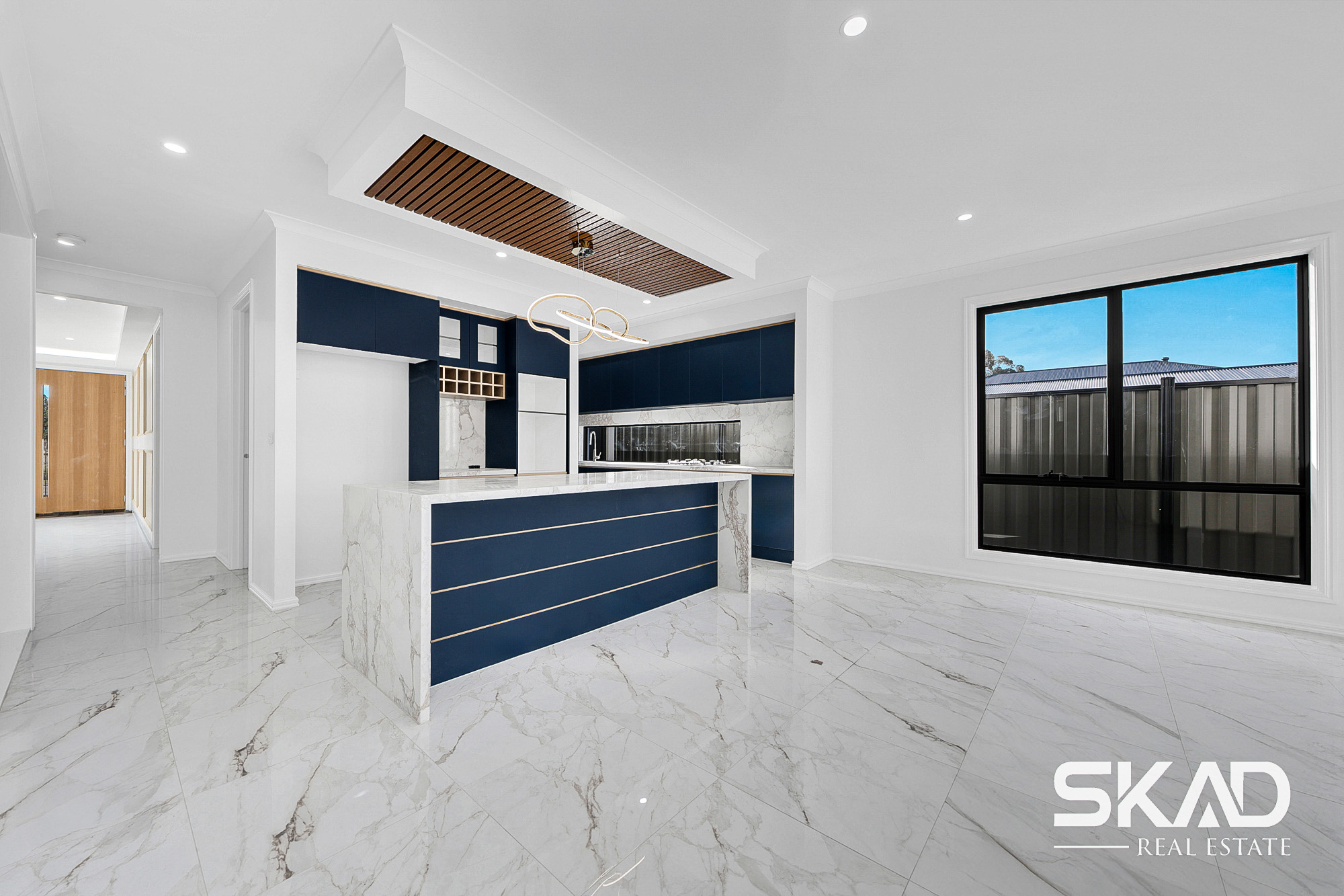 High ceilings and LED downlights that add to the sense of space and elegance